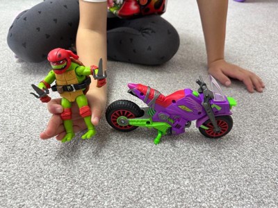 [This review was collected as part of a promotion.] A must-have for young ninja fans! This action-packed playset is perfect for any TMNT enthusiast. The vibrant purple cycle features a sleek design and sturdy construction, ensuring hours of fun. The included Raphael figure is detailed and comes with his signature sai weapons. With its exciting features and engaging gameplay, this toy is sure to delight kids of all ages.