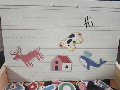 there are other toys that accomplish the same concept. the magnets are not strong enough and easily slide when I use the background pages and all the letters and character magnets can't be organized inside the case which makes finding the letters a bit of a hassle. it's a great concept, but definitely not worth the money.