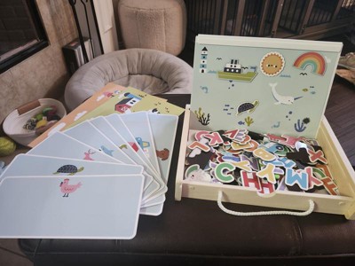 Educational and hands on keeps little hands busy at work learning. Has multiple ways to teach whether it's letters animals or simply learning their name. It's portable and can be used on the go . Easy to erase and change to a different picture. Magnets work well.