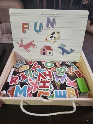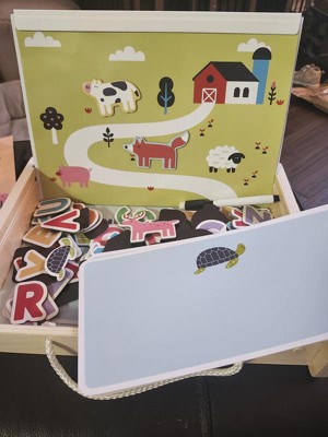 This is such a fun learning toy. There are so many different things you can do with this to play and learn. It comes with so many options, magnets- letters and animals, playscapes, and dry erase boards. It all fits back i to the box and can be taken anywhere. The box is very sturdy and can take whatever a young child will put it through. Overall, this is a very great addition to my childs toys.