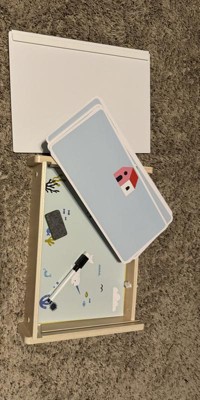 This easel is packed full of fun and different activities, dry erase, magnetic letters, animals, playscapes, that all fit inside it's box for easy to carry and store. My child loves to disk their name, and are learning basic words with the letters. The storage box is sturdy, and very well made. Very educational, abs a great learning tool for at home or on the go. Perfect gift for a little one in your life.