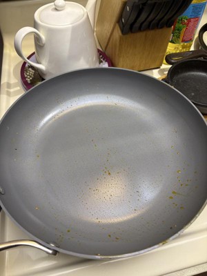 This 12" Ceramic Frypan from Figment works great. We really love the ceramic coating, so easy to cook with, nothing sticks, easy to clean, dishwasher safe if you need to. It has a nice sturdy handle without being too heavy. The cover also has a nice handle and is easy to use. Easy recommendation.
