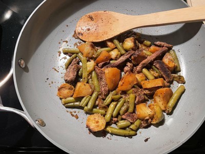This was my go-to pan for a few months but after that everything would stick to it 😭 We don't have a dishwasher so it was always hand washed and. I finally had to throw it away and replace it.