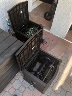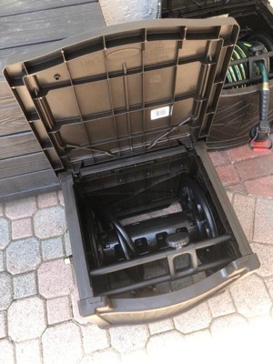 [This review was collected as part of a promotion.] Absolutely love this! I’ve been debating getting one and have been hesitant. So I’m so happy I did! I love the aesthetic and the storage capacity is good. I like the design. I love having my patio in order, so this is perfect. The assembly was quite easy and this is still fairly new. I do wish it was a bit heavier so it’s easier to wind the hose up without it bouncing around. Other than that it’s perfect!