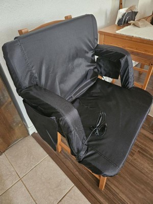 [This review was collected as part of a promotion.] The first thing I want to say is even without the heated option.. this chair is actually comfortable and keeps your back straight. Which is what I love! It has back support. Closes and opens easily. Transport wherever you want super easy. I don’t have a headboard on my bed and I put this chair on my bed to sit and watch tv before even trying it outside lol