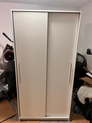 [This review was collected as part of a promotion.] Overall, this wardrobe looks good and feels pretty solid. The shipping boxes are pretty heavy, I did need help getting them in the house. Assembly took about 3 hours by a person I'd say to have a higher level of experience. For those who have less experience, it could take longer. The track for the sliding doors was bent, so we had to bend it back into shape in order to put the door on, luckily we were able to do this without too much struggle. One of the panels looked like something had spilled on it, possibly muddy water or coffee. It did come off with a little scrubbing. Overall it is very functional for storing jackets, and other seasonal items, and the two shelves are nice. It is not meant to hang longer items. I also like the hardware on the doors.