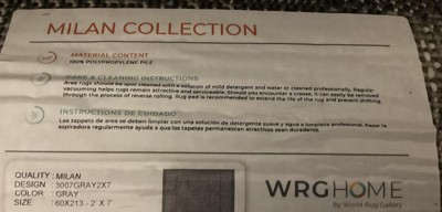 [This review was collected as part of a promotion.] This World Rug Gallery - World Rug Gallery Contemporary Distressed Bordered Area Rug - Gray 2'x7' is nice. Larger than expected. Pretty design.Great color. Non slide back is good.