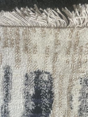 [This review was collected as part of a promotion.] I really like how silky-soft this abstract area rug feels and the neutral beige colors that match almost anything. It looks fresh and fits perfectly in my dining room. The heavy backing adds to its quality and installing it with a rug pad was easy. The modern design is so current, and the non-fringed sides are well-bound. It arrived rolled up, but the roll marks disappeared quickly when I laid it out upside down on the floor for a few days. It's great to have a stylish item from a prominent fashion designer at a relatively low cost. However, I do not like the fringe on the short sides. The fringe is short and thin, so it tends to bunch up and doesn't lay straight after someone walks or moves a chair over it. The rug has a thinner pile, which might not hold up well in high-traffic areas but works fine under a table. I wouldn't recommend it for an entryway because the color and fiber texture might not last. (However, it’s worth noting that RugsUSA says it is stain-resistant and appropriate for a high-traffic area.) Overall, it's a stylish, soft, and easy-to-install rug, but there may be better choices for high-traffic areas.