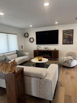 Great piece of furniture. It was easy to assemble, and the quality is great. The fireplace looks realistic enough, and the heat is nice in a modest sized home. The mid century design looks great with all my other furniture