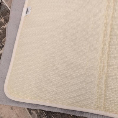 Transform your bathroom into a home spa oasis with the help of this Watercolor Blocks Flannel Cushion Bath Rug from Room Essentials™. The rectangular bath mat features a watercolor block pattern on a white backdrop for a modern look that blends with a variety of decor styles. The microfiber flannel fabric provides soft comfort underfoot, while the non-skid backing helps keep it in place. Plus, it can be machine washed as needed for easy cleaning.