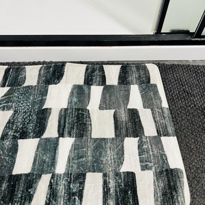 I purchased this bath mat for our master bathroom to replace our old one. The black and white geometric design is cool and adds a chic, contemporary touch to my decor. It’s the perfect size to fit in front of the shower and the material is plush and soft when you step on it out of the shower and it absorbs the water well. The underside has non-slip backing, so it won't slide around. The only thing I wish is that it was a little bit larger. I received an incentive to write this review.