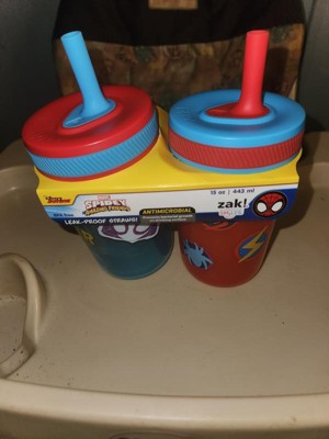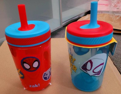 Zak Designs 2pk 15 fl oz Plastic Kelso Spidey and his Amazing Friends Straw Tumbler Set: Kids Cups, Dishwasher-Safe