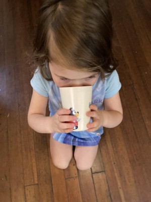 I love the design and the colors. The size is great for little hands. However the durability needs a bit of work. This set is a replacement because my toddler put the cup in the sink and it broke when she put it in there.