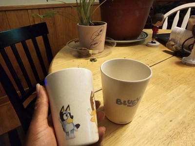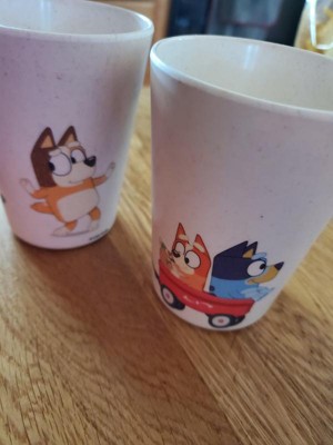 Who doesn’t love Bluey? These are simple little cups with our favorite character on them. They’re made of bamboo melamine, I believe, so while they FEEL light and fragile, they’re pretty solid cups! I had slippery hands and dropped one pretty hard while washing dishes yesterday and thought it would crack but nope! Perfect condition. They’re dishwasher safe so I usually put mine there, and the pictures on the cups are holding up well, no fading or chipping. They get a lot of use at our house and are working out really well!