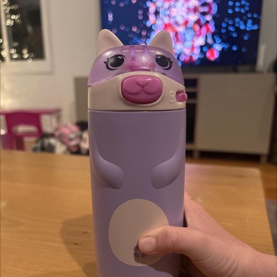 Ello 12oz Stainless Steel Water Bottle Cat Purple: Kids Portable Drinkware, Dishwasher-Safe, Lilac, Cold Beverages