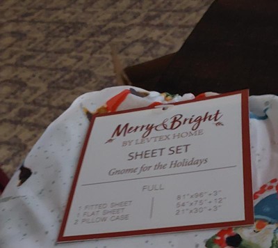 [This review was collected as part of a promotion.] I received this set of Levtex Home, Gnome For the Holidays twin size sheet set. I like it. It's got a very cute Christmas designs On the white sheets and pillow case. They Feel nice and a bit cool. I like that.