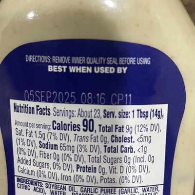 No taste to this garlic aioli~ it is very bland. It was not worth the purchase. I did inquire about a possible refund. Thought maybe it was bad, but I looked at expiration date and it had plenty of time before expiring. Just blah! Don’t like that there are eggs in here either! Big allergen. Ok well. Found a really great other brand in the market that I love.