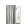 This unique Room Darkening Patio Panel is woven with a three-layer construction helping to darken the room and tamper outside noise, creating the perfect space where quiet is key. This piece is designed to block out natural light so you can sleep in on Sundays and enjoy mid-day movie marathons. Made from 100% polyester, it sports a vertical dot motif for a touch of playful appeal. Offered in a unique extra wide patio size to accommodate large windows, patio doors, and French doors. For easy care, just toss this panel in the washing machine and dryer (on a tumble setting). Also available in 54" wide panels at lengths of 63", 72", 84", and 96". TRIPLE LAYER JACQUARD FABRIC: This triple layer woven fabric is accented with vertical dots for added style. The curtain is insulated to create superior room darkening adding extra privacy and energy savings