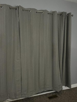 Bring both privacy and a decorative touch to any room in your home with this extra-wide single grommet panel. Made from 100% polyester, this piece is designed to block out natural light so you can sleep in on Sundays and enjoy mid-day movie marathons. The fabric is woven with two layers of colored yarn wrapped around a layer of black yarn for a superior room-darkening and energy-saving impact. A solid hue outfits this design for an understated look, while vertical dots form subtle stripes for a dash of distinction. Metal grommets adorn the header, making the hanging process a breeze. Offered extra wide for larger windows, sliding doors and French doors. To hang, use a decorative rod with a diameter of up to 1.25". Includes an attachable wand that can be positioned on either side for easy opening and closing. For easy care, just toss this panel in the washing machine and dryer (on a tumble setting). Choose from 63", 72", 84", and 96" lengths. TRIPLE LAYER JACQUARD FABRIC: This triple layer woven fabric is accented with vertical dots for added style. The curtain is insulated to create superior room darkening adding extra privacy and energy savings