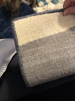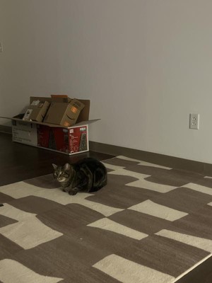 My cat loves this rug! It’s a bit on the thin side, but it’s still super soft and comfy. I don’t have a non-slip rug pad underneath it and it’s not moving at all on the floor! Love the funky pattern, it fits right into my apartment!