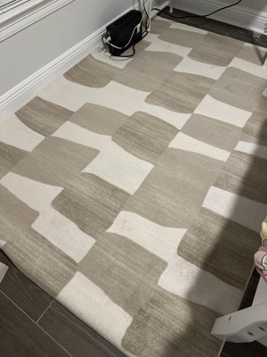 Cover your flooring in functional style with this Organic Shapes Area Rug from Room Essentials™. This rectangular area rug showcases geometric print on a beige backdrop for modern flair. The tufted construction adds soft comfort to your flooring for a cozy feel underfoot, while skid-resistant latex backing helps keep it in place. The fade- and stain-resistant construction helps keep it looking its best for longer, and the low pile height makes it great for placement in high-traffic areas.