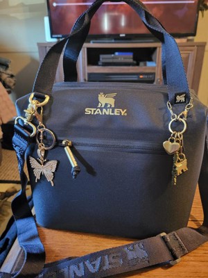 I absolutely love this cooler. The black with gold hardware. I added some cute charms. It's perfect cooler for taking to work, the gym, or anywhere you want to bring a meal and some drinks. it will be perfect to take the the pool in summer! It looks like a purse. I put one large ice pack on the bottom, and it holds medium sized tupperware, sandwich, and a couple cans of seltzer or pop too. Keeps everything very cold for hours, and also is very easy to clean. I would buy again, great buy!