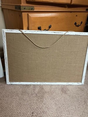 [This review was collected as part of a promotion.] This board is a lovely addition to any space. It’s the perfect size, and I love the distressed white trim on the border. The burlap backing on the board makes it nicer than the standard cork board. Perfect for an office or just dressing up any room in your home. I need more.