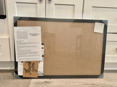[This review was collected as part of a promotion.] I love this linen board!!! It's super simple and sleek but gives any room that perfect accent area for photos, cards, important reminders and more! The wood push pins are super cute but I feel like they don't exactly match the board- I would love if they matched the black border. It comes with a hanging string attached as well as mounting hardware which is great. I can't wait to use this in my new office 😍