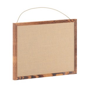 Add a bit of rustic charm and functionality to your home, office or classroom with this Rustic Wall Mount Linen Board. With its torched brown wood frame, it not only provides a stylish touch but is also sturdy and durable. Use the included wood push pins to secure your notes, photos, or artwork, or let it stand alone as a piece of decorative wall art. The linen board is easy to hang, either vertically with the included hanging hardware or horizontally with the attached jute rope. This makes it a versatile addition to any space, providing an easily accessible place for communication or showcasing sentimental items. Whether it's a shopping list, a reminder, or a child's masterpiece, this board is perfect for displaying it in style.