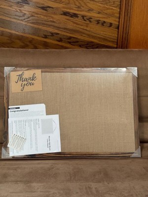 [This review was collected as part of a promotion.] This linen push pin board is exactly what I needed for my home office! It is aesthetically pleasing with its black wood frame and natural tone linen. I like that it also includes a cord for hanging. It feels sturdy overall and good quality.