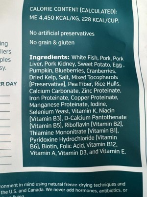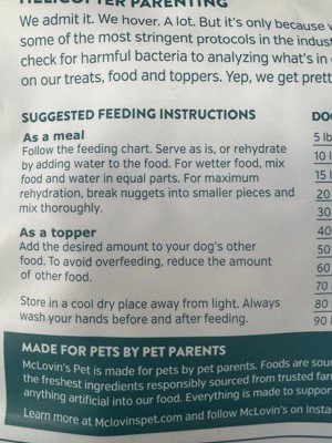 McLovin's freeze dried dogfood was a treat for our fur baby. It came in a resealable package with ckear directions for serving size per the weight of your pup. We mixed it with water for a wetter meal per the instructions and our dog ate it up. It does give off a strong older, but we feel good that she had a natural healthy meal.