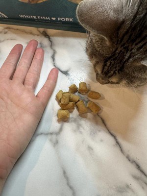 My dog AND cat love this food! As the human in their life, I find it very versatile. I use it as a topper to my dog’s food and it also works as training treats! Bite size and soft to chew. Easy to carry as training treats. My cat also finds it appealing (probably because of the fish), and loves that it’s bite size and chewy. Good stuff