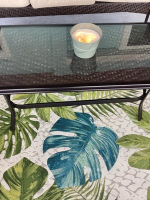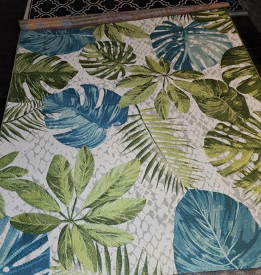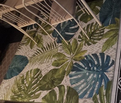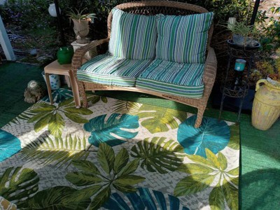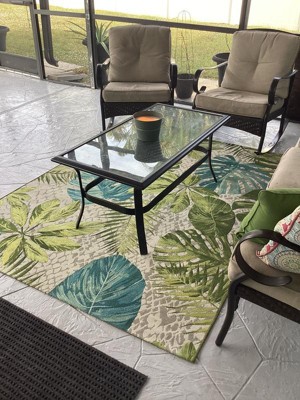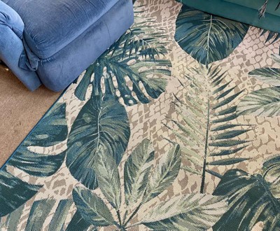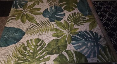 [This review was collected as part of a promotion.] I just love this rug! It's gorgeous and I love the tropical look. It looks great on our patio and the colors tie in perfectly with our couch cushions. It's really well made and would be perfect indoors as well. It's really comfy to walk on too. I plan on spending a lot of time on my couch admiring it.