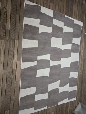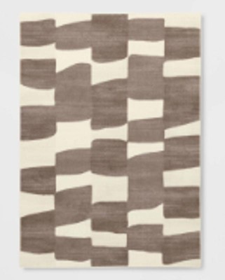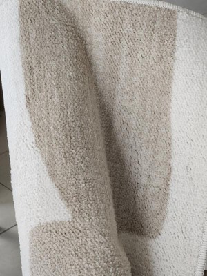 Cover your flooring in functional style with this Organic Shapes Area Rug from Room Essentials™. This rectangular area rug showcases geometric print on a beige backdrop for modern flair. The tufted construction adds soft comfort to your flooring for a cozy feel underfoot, while skid-resistant latex backing helps keep it in place. The fade- and stain-resistant construction helps keep it looking its best for longer, and the low pile height makes it great for placement in high-traffic areas.