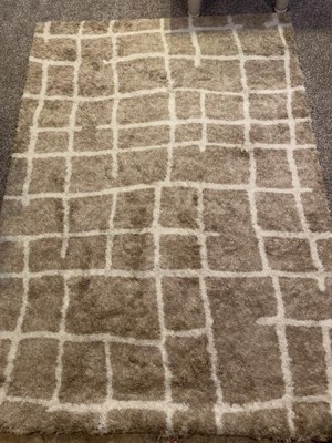 Enhance your living room decor with the eye-catching look of the Broken Grid Shag Area Rug from Threshold™. This rectangular area rug showcases a broken grid pattern over a brown base for modern flair. The tufted shag construction adds soft comfort to your flooring for a cozy feel underfoot, while skid-resistant latex backing helps keep it in place. Plus, the high-pile rug's fade- and stain-resistant construction helps keep it looking its best for longer.