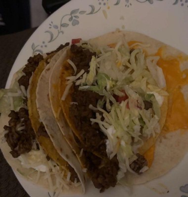 These are my favorite if I want to make tacos at home! I love the double layers with the crunch of the hard Taco but together in the soft, its perfect. The cheese is also so good! I wouldnt suggest this if youre dieting but great for a cheat meal and Im sure kids would love it!!