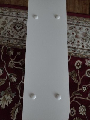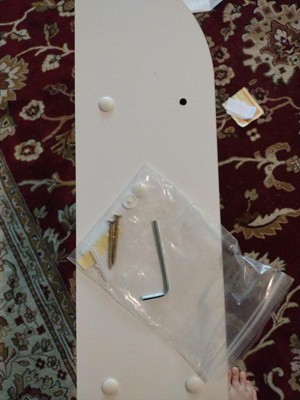 I was a bit surprised when a narrow box showed up for the shelf. I'm used to buying shelves that are already put together when they're just small wall shelves. The instructions were simple enough. Although I did go look up the picture of the shelf. So I could see what the finished product looked like. Biggest disappointing issue was they gave me one less screw than I needed. There was an extra white clip to cover the screw holes. Which I can't use because it's missing a screw. I haven't hung it on the wall yet. It's pretty small so it's not going to hold a lot and it's lightweight. The way it's shaped there's no way to just set it up somewhere. You've got to hang it up on the wall. I'll see if I can find an extra screw because even though it's sturdy enough . It looks unfinished.