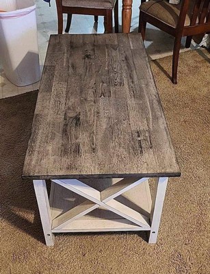 [This review was collected as part of a promotion.] Absolutely beautiful farmhouse style coffee table. It is so pretty and was very easy to assemble. It is quite sturdy and heavy which I like, quality is immaculate! It is also very stylish, like the accents it has on the sides, looks beautifully in our living room.