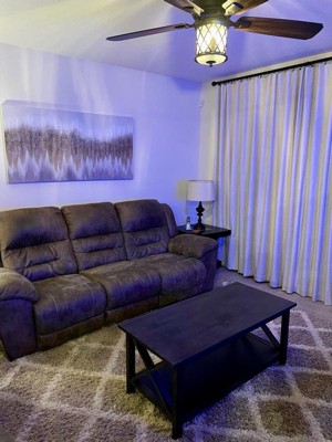 [This review was collected as part of a promotion.] This coffee table was the perfect coffee table for our living room! It is beautiful, and a great size without being too big or too small. Big fan of farmhouse style furniture. It’s nice that it has space under the table, so if we needed a place to put miscellaneous objects, although my preference would be to keep that clear. My fiancé is the one who put it together, who said it was fairly easy, and altogether probably took less than a half hour to set up. However, he said don’t grab a tape measure because the pre-scribed marked line on the back of the table top was not square. He was able to fix while putting together.