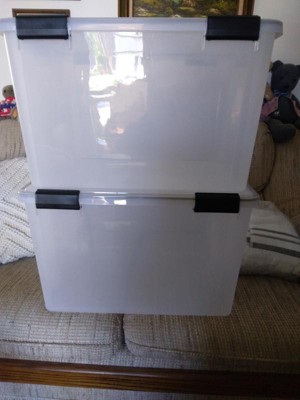 [This review was collected as part of a promotion.] IRIS USA 74 Quart WeatherPro clear storage boxes are the perfect way to store our keepsakes, winter clothes, and camping gear. These heavy-duty storage totes are sturdy, and the WeatherPro seal and latches on the storage bin lid protect contents by keeping moisture and critters out.