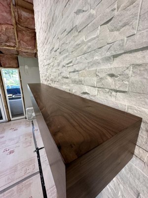 Modern Ember Walnut Creek Fireplace Mantel Shelf, Real Walnut Wood