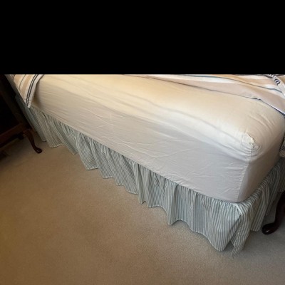 The skirt irons nicely and it fits well on our queen bed frame. Looks good and works with our room colors.