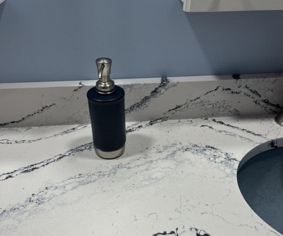 iDESIGN York Soap Pump Matte Navy/Brushed Nickel: Ceramic & Steel, Hand Wash, 10.58oz Capacity