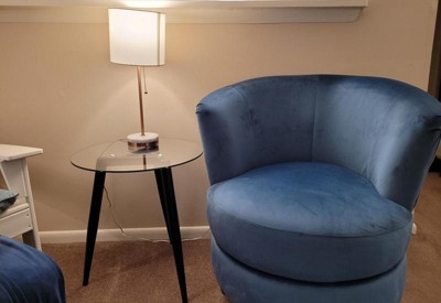 This side table looks modern and sleek and fits into most decor. The tempered glass tabletop is sturdy and solid. It doesn't feel like it's going to break or shatter, which is always my fear with glass. It's a perfect size and height. I put it in my living room, but it would be great in a bedroom, too. A lamp sits comfortably on it. It came well packaged, and there are not many parts: 3 legs, the glass top, and some screws. I found the directions really difficult, though, as there are no written instructions. It's a three-page print-out with a black and white drawing of the pieces; how to screw it together; and the finished product. The legs screw together in a triangle form, and it takes a minute to figure out which piece goes where. You put it together upside-down, and when I stood it upright I realized there are stickers on top of the legs, which are then under the glass! It took me a while to get the stickers off after I had already assembled it. I hope that is a tip to save the next person some time and trouble. Otherwise, I would say this tabletop is perfect for me, and I would recommend it.