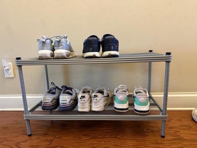 [This review was collected as part of a promotion.] This shelf was very easy to construct just snap the pieces in place. I didn’t expect the mesh shelf to be good metal which I love. I know it’s going to be sturdy and hold up over time. It’s very spacious u can fit about 3pairs up to 4 on the rack. It even fits boxes plus it’s small enough to fit into almost any space.
