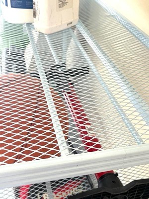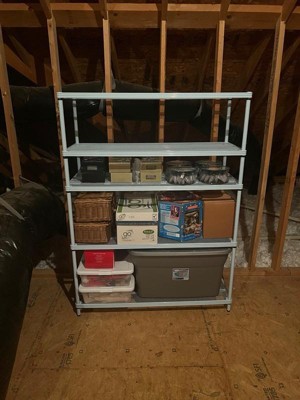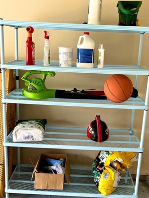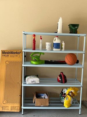 [This review was collected as part of a promotion.] Meshwork 5-tier shelf is a practical and stylish storage solution, offering ample space for organizing various items while adding a modern touch to any room. It is easy to build and it is very sturdy. Shelf can handle your Lawncare equipments to fertilizer bags. It has light blue color which is really cool. It makes my garage look really fantastic. It is light weight. It has flexible bottom support which can we adjusted to balance on any floor.