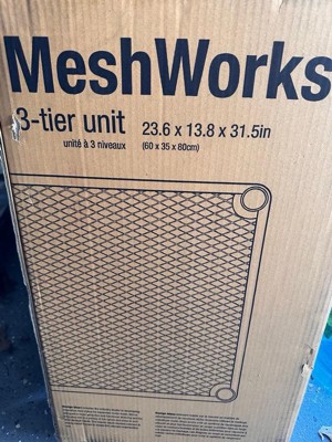 Design Ideas MeshWorks 3 Tier Full-Size Metal Storage Shelving Unit Rack for Kitchen, Office, and Garage Organization, 23.6” x 13.8” x 31.5,” Black
