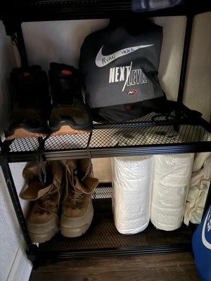[This review was collected as part of a promotion.] This shelf is great. Easy to put together. Decently sturdy. The he mesh meal shelves make it great for things not falling through. The shelf holds a decent amount of stuff. All in all, definitely worth it in my opinion!!!