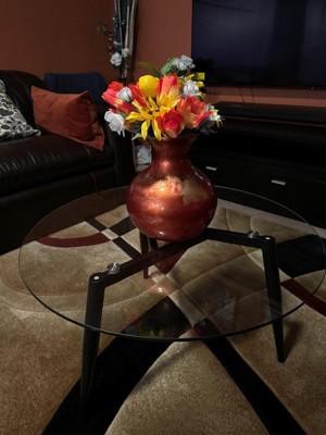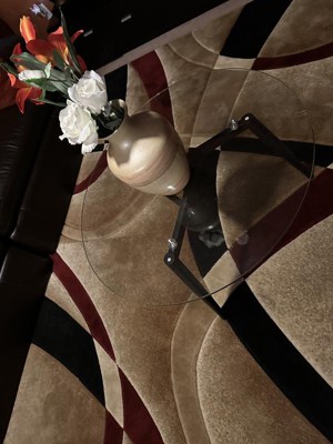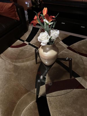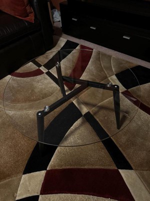 This modern glass coffee table is absolutely beautiful. It came well packaged and was easy to installed following the instructions in the manual and tools. It has a clear glass at the top and three legs which gives it a sleek look. I love the quality and how easy it is to clean. It added a unique touch to my living room. Love it