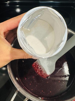 [This review was collected as part of a promotion.] It was easy to use for my Raspberry jam, but it turned slightly sour and still runny even though I used all of it. Next time, I will add more sugar and cool longer.
